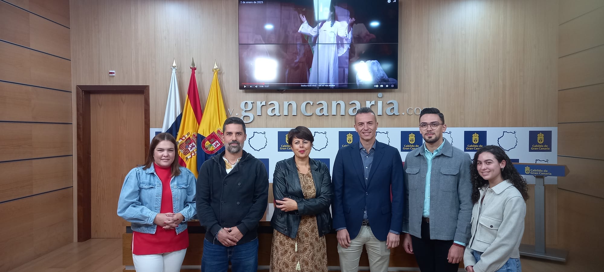 La consejera de Desarrollo Económico del Cabildo de Gran Canaria, Minerva Alonso, el alcalde de La Aldea de San Nicolás, Víctor Hernández, y la concejala de Patrimonio Histórico, Ingrid Navarro, acompañadas por Ancor Suárez, director del Proyecto Comunitario del municipio, presentaron este jueves el Auto de los Reyes Magos de La Aldea de San Nicolás, una de sus tradiciones navideñas más representativas.