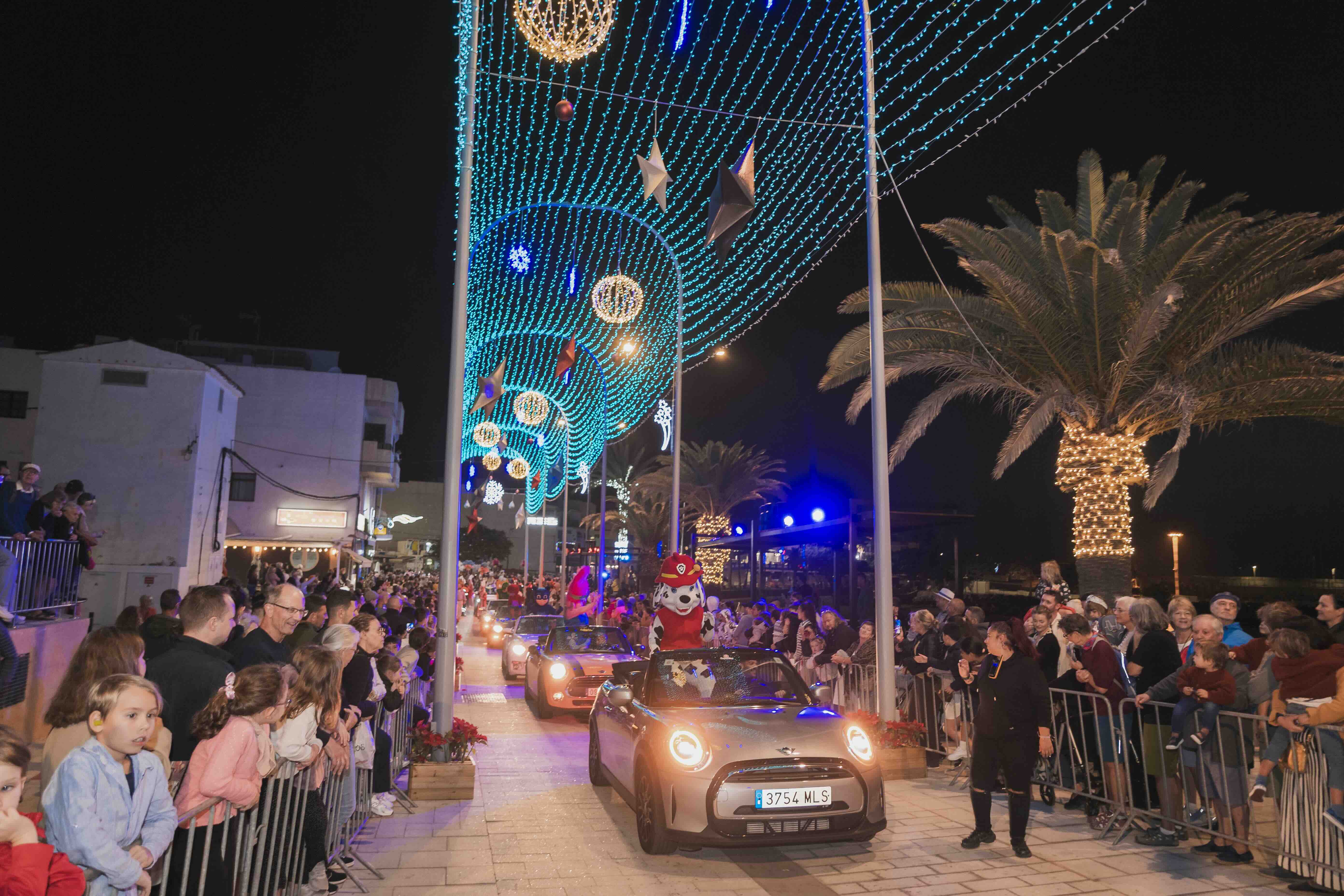La calurosa bienvenida fue devuelta por Melchor, Gaspar y Baltasar con igual fervor, dirigiendo durante el recorrido a todos y todas los presentes sus mejores sonrisas y saludos. La comitiva echó a andar a las 18:00 horas, siendo su primer tramo sin ruido para que pudieran disfrutarlo al máximo las personas con hipersensibilidad auditiva. Cuando el cortejo llegó a la playa de Las Marañuelas, la música comenzó a sonar marcando el paso de deshollinadores, zancudos, malabaristas y otros personajes circenses y navideños, queridos personajes del mundo del cómic, videojuegos y de películas de animación.