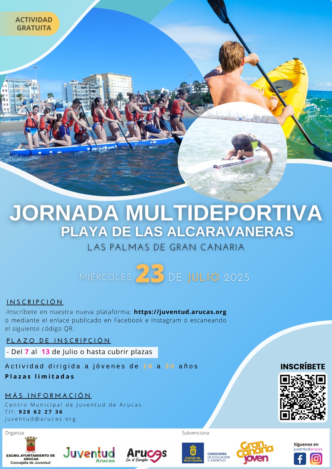 La Concejalía de Juventud de Arucas, te invita a disfrutar de Piragüismo, Stand Up Paddle, Salvamento deportivo y deportes de playa, en colaboración con el Cabildo de Gran Canaria, Consejería de Educación y Juventud.