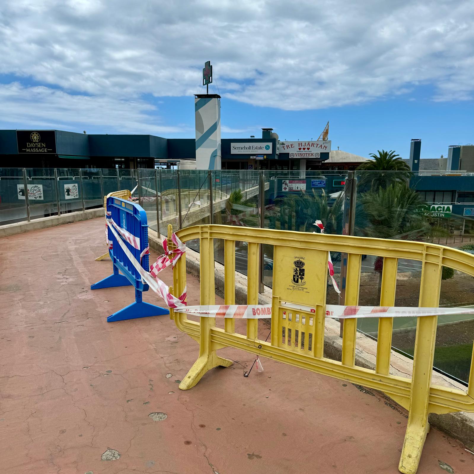 Este cristal roto se puede ver en el paso aéreo junto al Centro Comercial de San Agustín. Lleva así desde hace varios meses sin que el Ayuntamiento haya venido a repararlo. Y sabemos que aún pasaran varios meses más antes de que acometan la tarea.