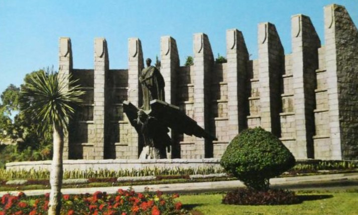Con este nombre y con esa idea se anunciaba esta obra en las revistas turísticas de los años siguientes, que cuando hablan de la capital indican que es “donde se alza el moderno monumento al Caudillo obra del escultor Juan de Avalos, en forma de fuente luminosa con un vistoso juego de aguas y una alegoría de la partida de Franco, desde esta isla, para iniciar la Cruzada de Liberación” (14).