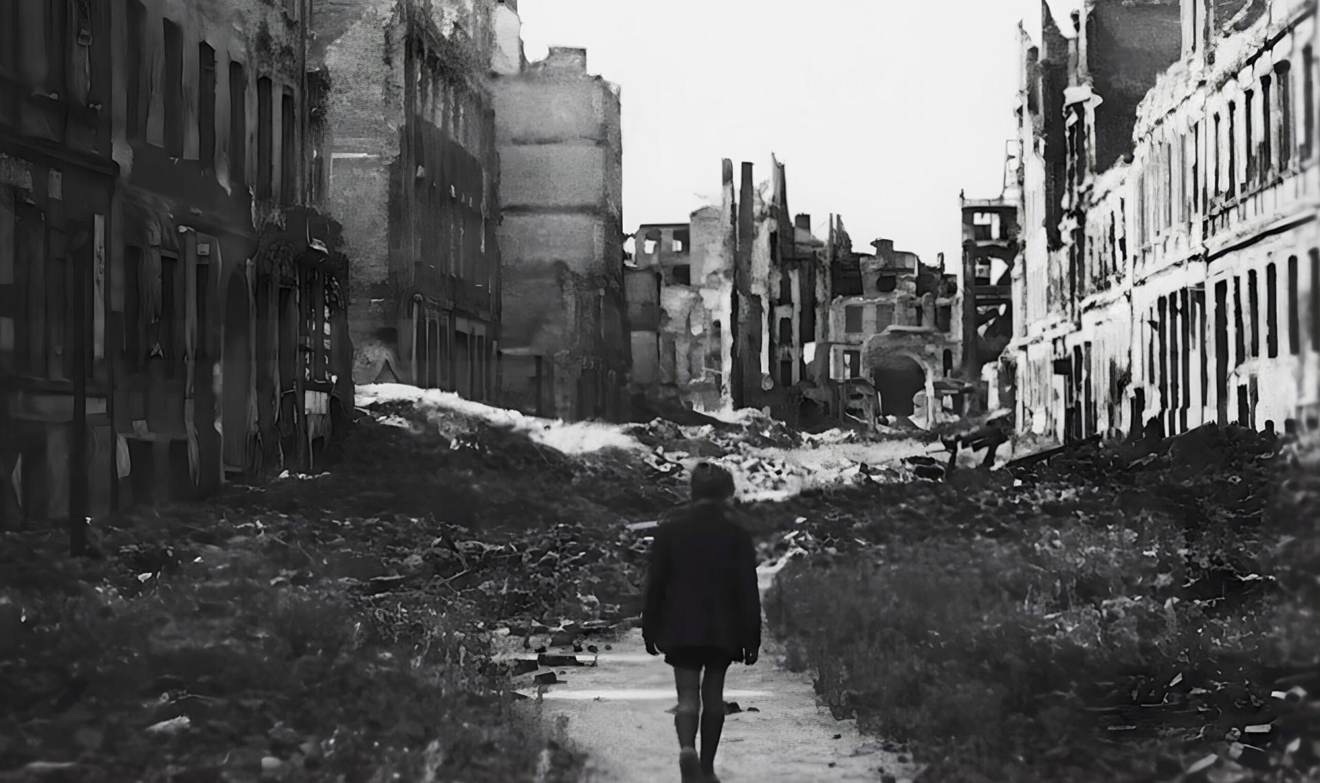 Esto nos lleva a una película italiana de Roberto Rosselini del año 1948: “Alemania, año cero”, que testimonia la derrota humana. La humillación perpetua en forma de vergüenza. La Alemania rendida con sus gentes abatidas, desorientadas y muy hambrientas. Un mundo sepulcral sin esperanza para los vivos.
