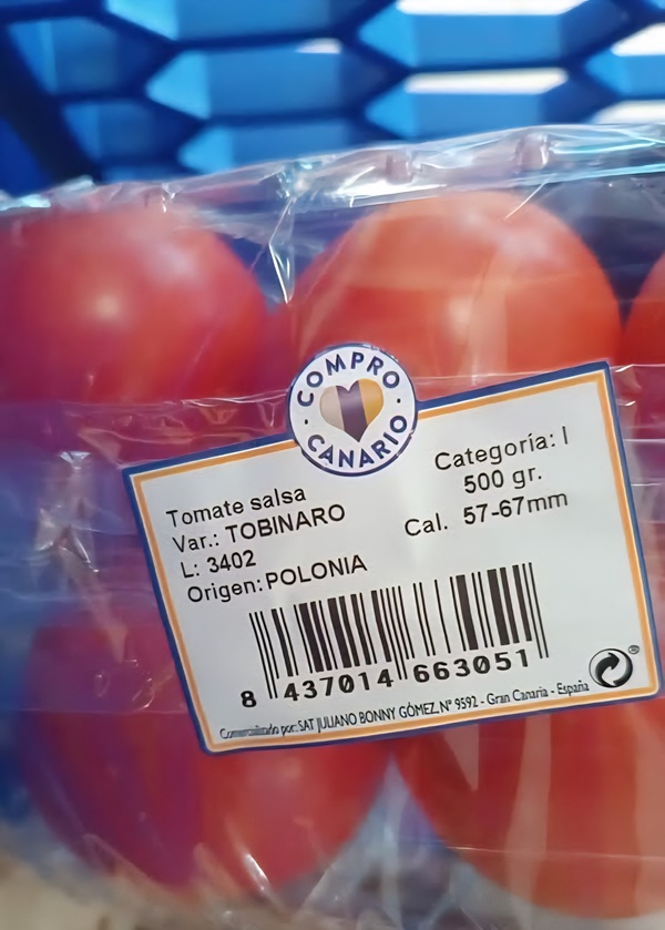Cada vez es más frecuente encontrar en los lineales de algunos supermercados productos que, bajo una apariencia “canaria”, esconden en realidad un origen lejano y ajeno a nuestra tierra. El caso más reciente que me encontré fue el de unos tomates con la etiqueta “compro canario” adornada con un corazón en los colores de la bandera canaria. Hasta ahí todo bien, salvo por un detalle: el producto venía de Polonia. No es un hecho aislado. Lo mismo ocurre con papas procedentes del Reino Unido, camufladas bajo rótulos ambiguos que juegan con la buena fe de las personas consumidoras.