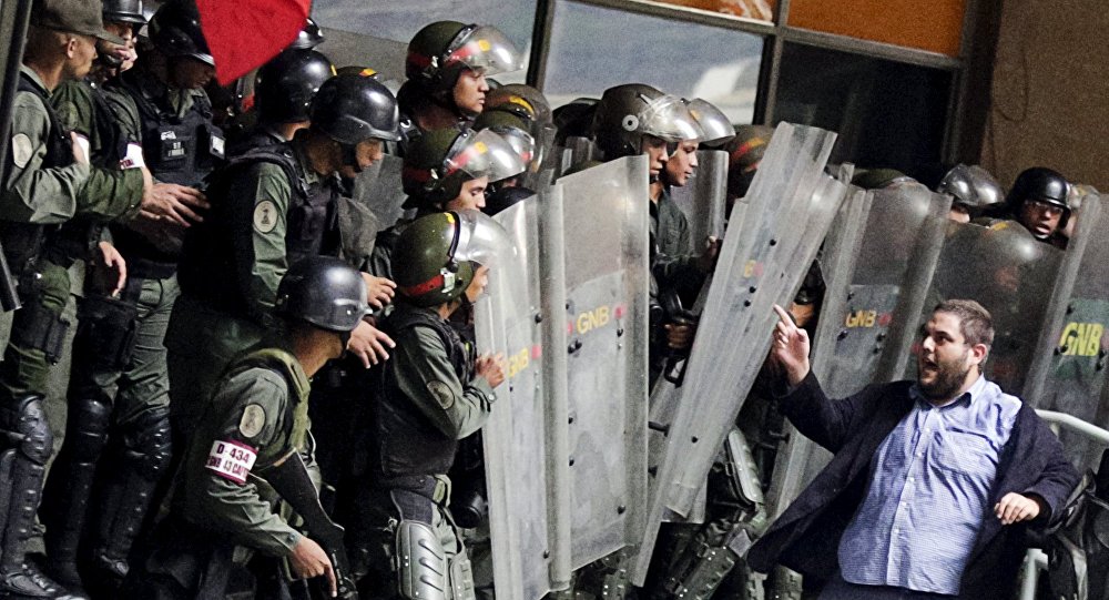 Efectivos de la Guardia Nacional de Venezuela desalojaron a siete diputados opositores que el pasado jueves se encadenaron en la sede del poder electoral para reclamar un referendo que pueda revocar el mandato del presidente Nicolás Maduro, según ha publicado la agencia de noticias Sputnik Mundo.