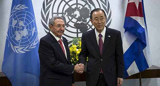 Ban Ki-moon y Raúl Castro debaten normalización de relaciones con EEUU