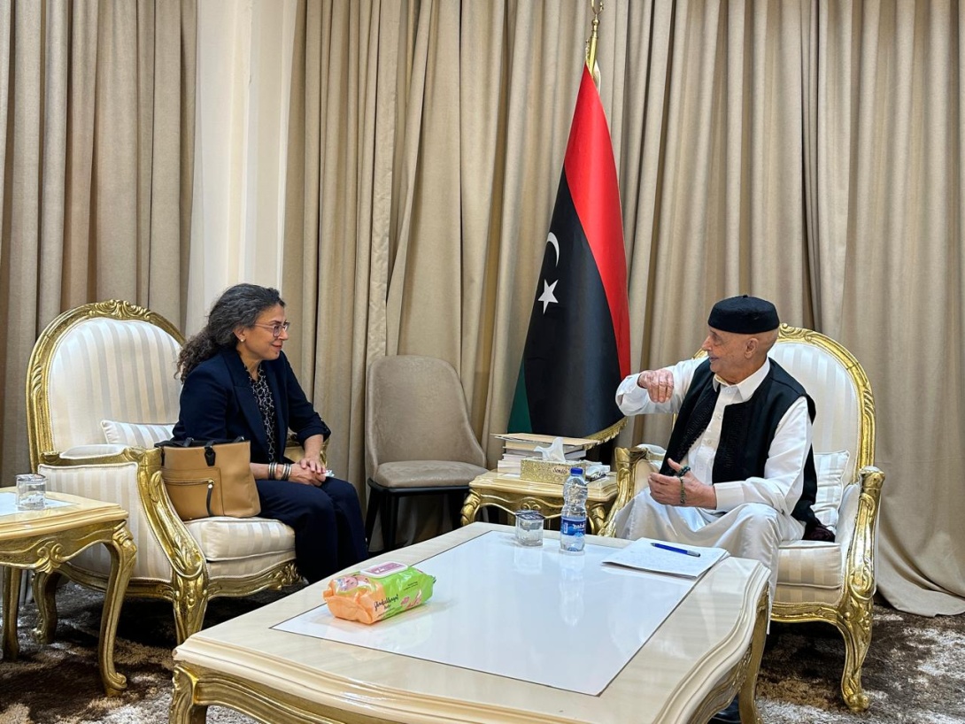 Koury's meeting with Saleh came after her meeting with Khalifa Haftar in his office in the Rajma area in Benghazi, as part of a series of meetings that she is holding with various Libyan parties and actors in order to mobilize support for the political process facilitated by the United Nations.