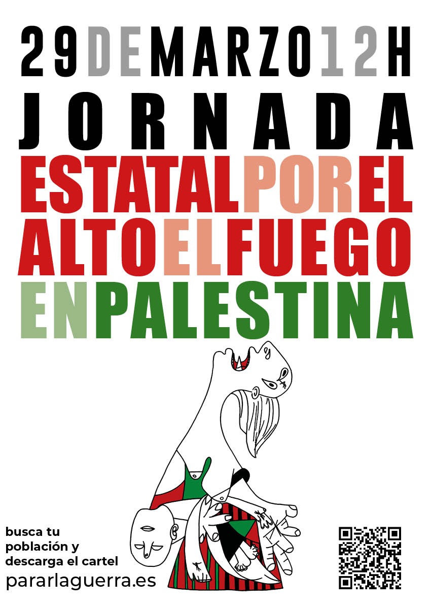 El movimiento ParaLaGuerra.es, formado por 100 organizaciones y miles de profesionales de la Cultura, convoca concentraciones en todo el país, en hasta 85 poblaciones para denunciar la ruptura del Alto el Fuego en Palestina por parte de Israel.