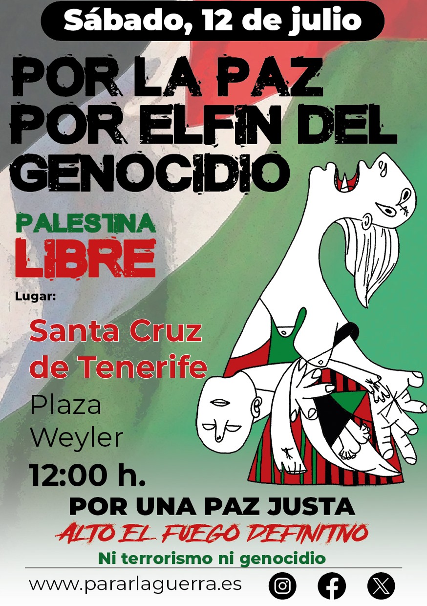 On Saturday, July 12th at 11:00 am, PararLaGuerra.es calls on the people to fill the streets and squares for Peace in the Middle East, for an End to Genocide in Palestine.