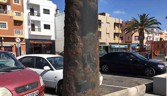 Oxido en las farolas, falta de losetas o bancos de madera a los que le falta la madera, son algunos de los desperfectos del mobiliario urbano. “La avenida está muy próxima al mar y aparte de elegir los elementos que menos sufran sus consecuencias, es necesario que después se haga un mantenimiento para los elementos no se deterioren tan rápido”.