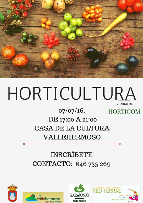 El Ayuntamiento de Vallehermoso celebrará este próximo jueves 7 de julio una jornada formativa sobre horticultura, dentro de su apuesta por el fomento de la agricultura ecológica en el municipio y que tendrá un carácter eminentemente práctico. La formación tendrá lugar en la Casa de La Cultura ‘Pedro García Cabrera’ en horario de 17.00 a 21.00 horas. Para participar en la misma será necesario inscribirse previamente llamando al teléfono 646 735 269.
