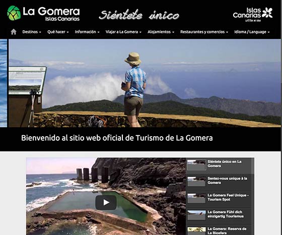 En este sentido, el portal cuenta inicialmente con cuatro idiomas y pretende que el potencial cliente descubra los encantos de La Gomera resaltando el uso de los vídeos, presentes en prácticamente todas las páginas, y de imágenes atractivas y contenidos creíbles. El objetivo es crear un “sitio vivo” generando para ello nuevos contenidos y ampliando constantemente el banco de imágenes ofrecidas a los potenciales clientes.
