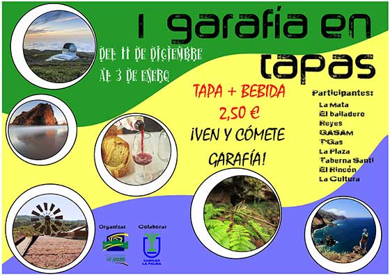 La Concejalía de Desarrollo Local del Ayuntamiento de La Villa de Garafía ha organizado, junto a los establecimientos participantes y la colaboración del Cabildo Insular de La Palma, la I Ruta de tapas “Garafía en Tapas", con el fin de fomentar la gastronomía local y la restauración.