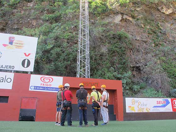El Cabildo de La Palma, a través de la Consejería de Emergencias que dirige Carmen Brito y en colaboración directa con el Servicio de Recursos Humanos que dirige Luis Javier Camacho y la Unidad de Prevención de Riesgos Laborales del Cabildo, está desarrollando durante estos días en el estadio de fútbol Silvestre Carrillo de Santa Cruz de La Palma unos cursos de seguridad en la ejecución de trabajos en altura del que están siendo beneficiarios trabajadores de distintas áreas del Cabildo Insular, principalmente de Infraestructuras, pero también del Consejo Insular de Aguas, Medio Ambiente, Deportes y del Centro de Coordinación Operativa Insular (Cecopin).