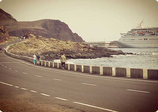Con la llegada de cruceros al Puerto de la Estaca los pasajeros se trasladan hasta Timijiraque en busca de algún restaurante o cafetería, realizando el trayecto a pie por la orilla de la carretera.