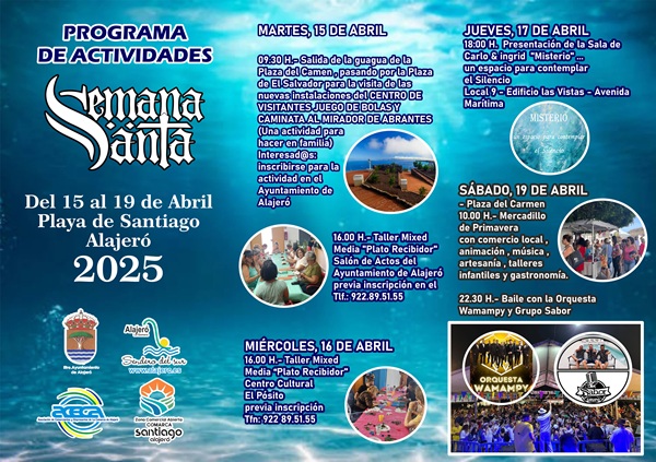 Los días de la celebración de la Semana Santa invitan a la participación en actos culturales y populares que vienen a unirse a los estrictamente religiosos en un municipio como el de Alajeró. En este sentido el Ayuntamiento de la localidad en colaboración con otras entidades, colectivos y vecinos ha elaborado un programa de eventos que tendrán lugar la próxima semana.