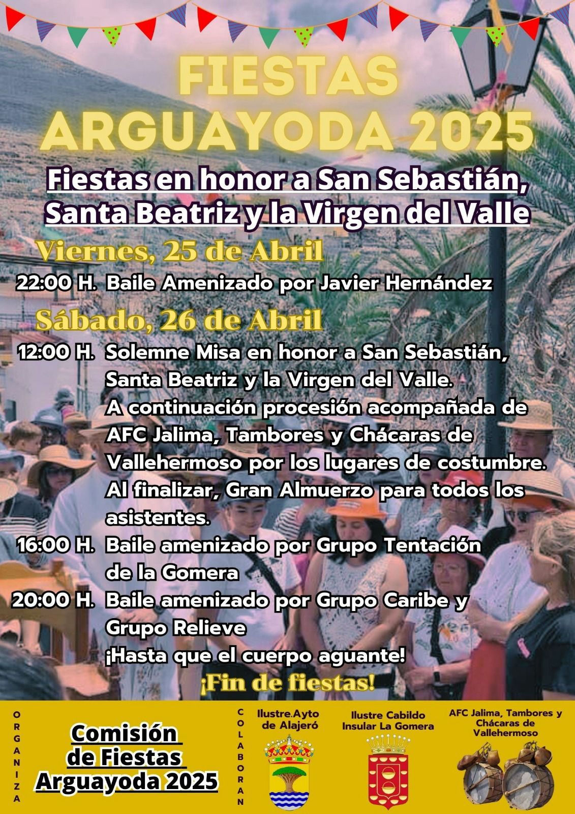 El barrio de Arguayoda en el municipio de Alajeró celebra el próximo viernes y sábado, 25 y 26 de abril, respectivamente sus fiestas en honor a San Sebastián, Santa Beatriz y la Virgen del Valle.