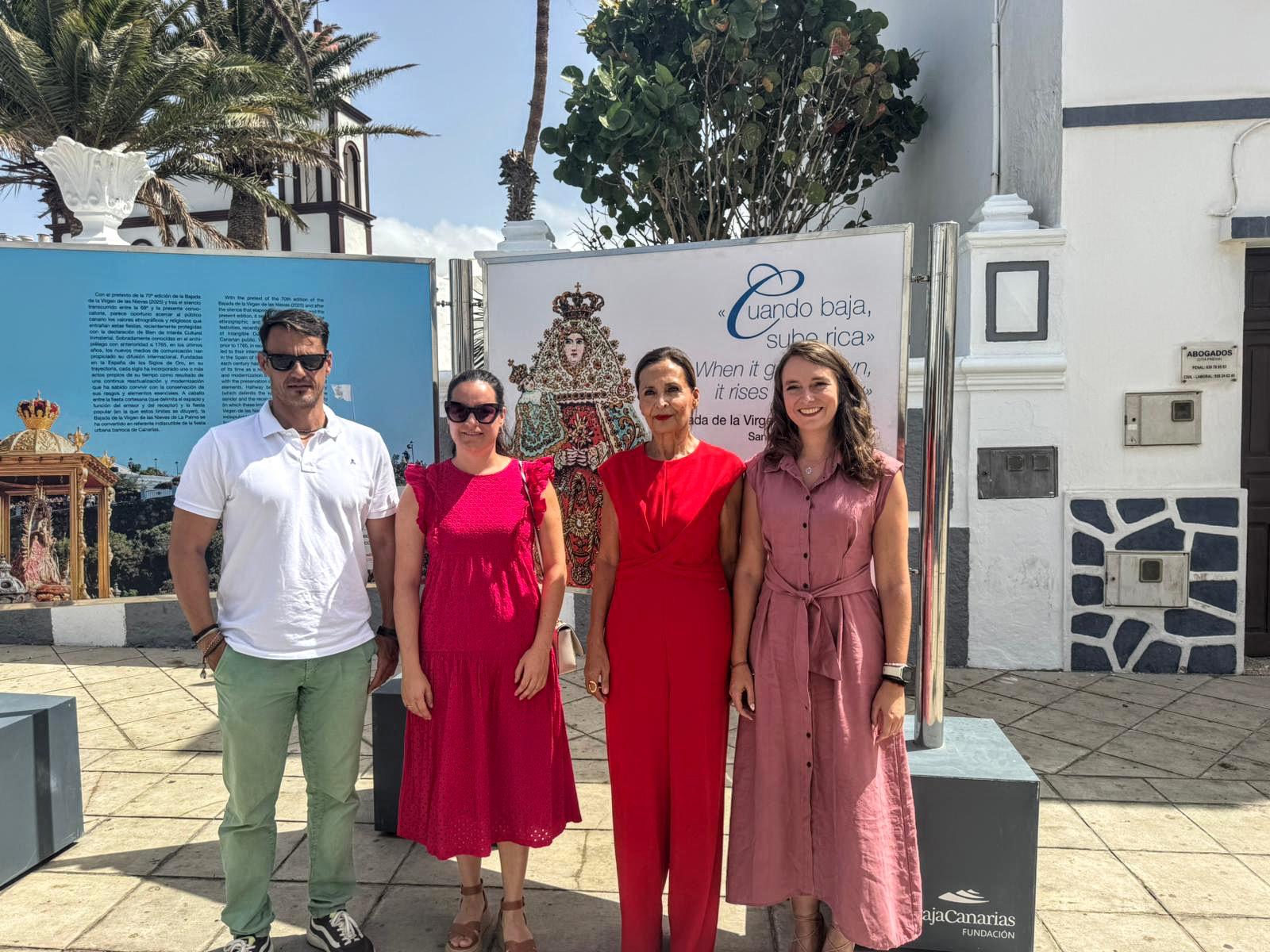 La exposición recorre los diferentes aspectos históricos, religiosos y culturales que dan forma y cuerpo a estas fiestas cuya LXX edición finalizó el pasado 5 de agosto en la capital palmera y que son un claro ejemplo de cómo una tradición centenaria trasciende lo local para convertirse en referente de identidad colectiva y patrimonial en el Archipiélago. La alcaldesa de la Villa de Agaete, María del Carmen del Rosario Godoy, acompañada por miembros de la Corporación y la concejala de Patrimonio y Turismo de Santa Cruz de La Palma, Saray González, inauguraron esta muestra itinerante ubicada precisamente en la calle Virgen de las Nieves. En este sentido, la edil palmera subrayó que “esta exposición es una manera de tender puentes entre islas a través de la devoción compartida a Nuestra Señora de las Nieves, llevando el espíritu de la Bajada más allá de la capital palmera y reforzando los lazos culturales y religiosos que nos unen”.