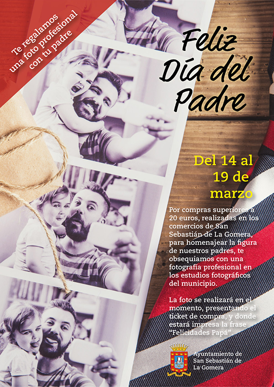 Una vez el estudio verifique el ticket la fotografía, ésta será realizada al instante, figurando en ella el texto “Felicidades Papá” y siendo la misma completamente gratuita. Los centros donde será válida la promoción serán Foto Estudio Olives o Foto Vídeo Gomera.