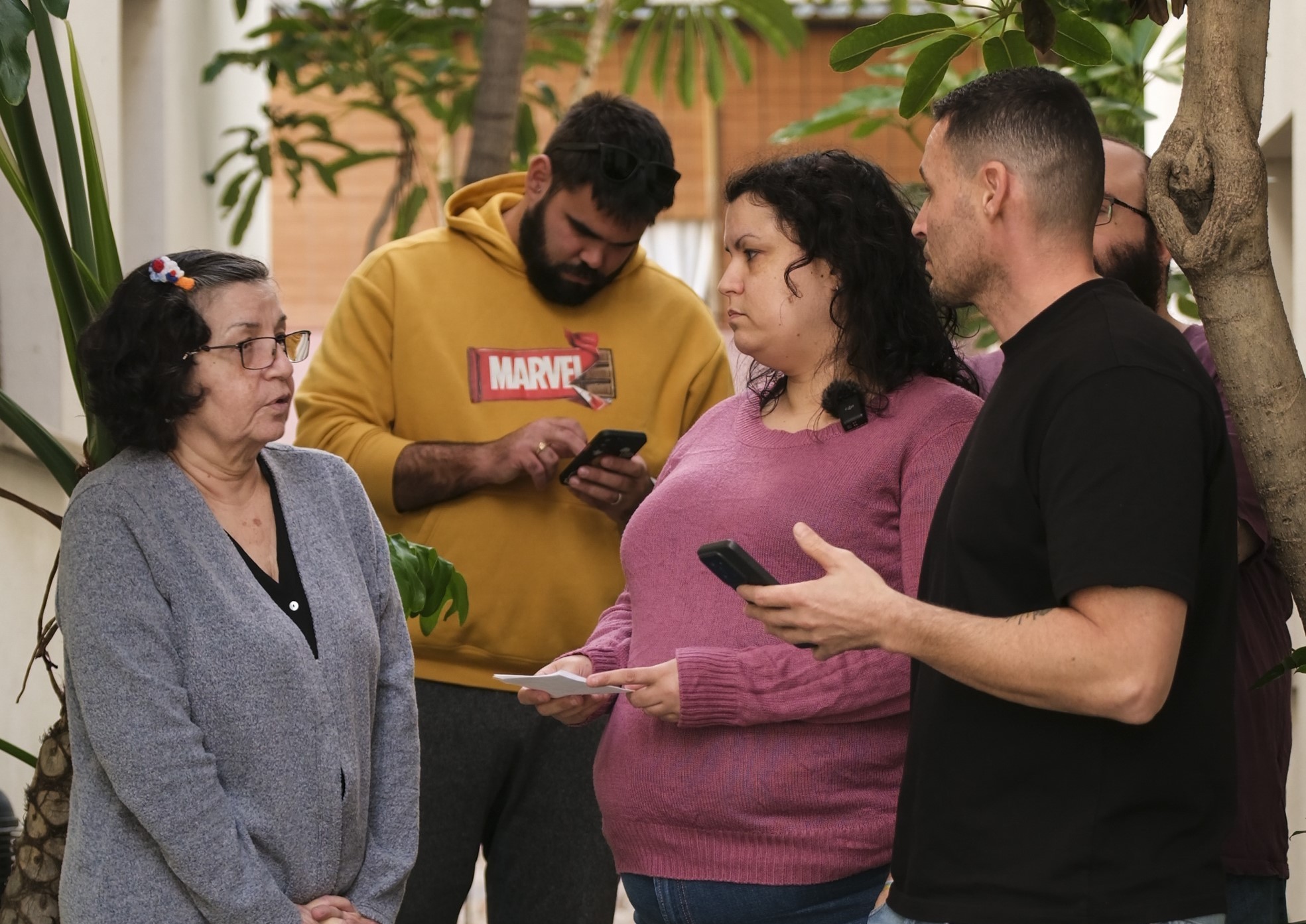Aitor Montelongo (derecha), portavoz de Drago Santa Cruz de Tenerife, junto a los vecinos y vecinas afectadas en el barrio de La Alegría.//Cedida