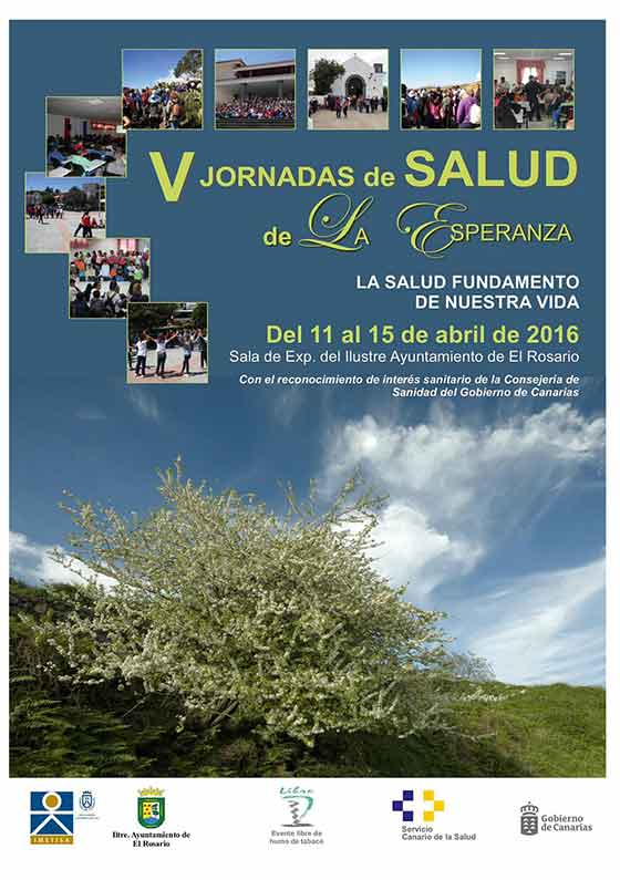 Con el objetivo de celebrar el Día Mundial de la Salud, que se celebra hoy jueves, 7 de abril, el Ayuntamiento de El Rosario, junto con el Servicio Canario de Salud del Gobierno de Canarias, organiza las V Jornadas de Salud de La Esperanza, un ciclo de más de veinte ponencias y talleres prácticos sobre aspectos relacionados con la salud, que se llevarán a cabo desde el lunes 11 y hasta el viernes día 15, en horario de mañana y de tarde. El lugar donde se desarrollará dichas jornadas será en La Esperanza, en la Sala de Exposiciones del Ayuntamiento de El Rosario, y se desarrollará bajo el lema "La salud, fundamento de nuestra vida".