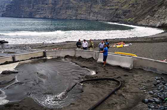 El sistema que se utiliza para llevar la arena desde el Puerto Deportivo de Los Gigantes hasta la playa es el de bombeo en continuo que consiste en una bomba aspiradora y una tubería flexible