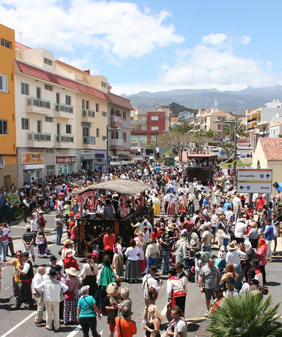 La romería, que encabezó la carroza de las candidatas y la romera mayor, infantil y adulta, contó con más de una decena de carrozas y centró uno de sus mejores momentos con la ofrenda de los grupos y los colectivos al santo, frente a la ermita del santo, que data de 1675, y que estuvo acompañado por Santa María de la Cabeza, al igual que en antaño. La fiesta romera concluyó en el recinto ferial con verbena a cargo de las orquestas Tropin y Pasión Gomera.