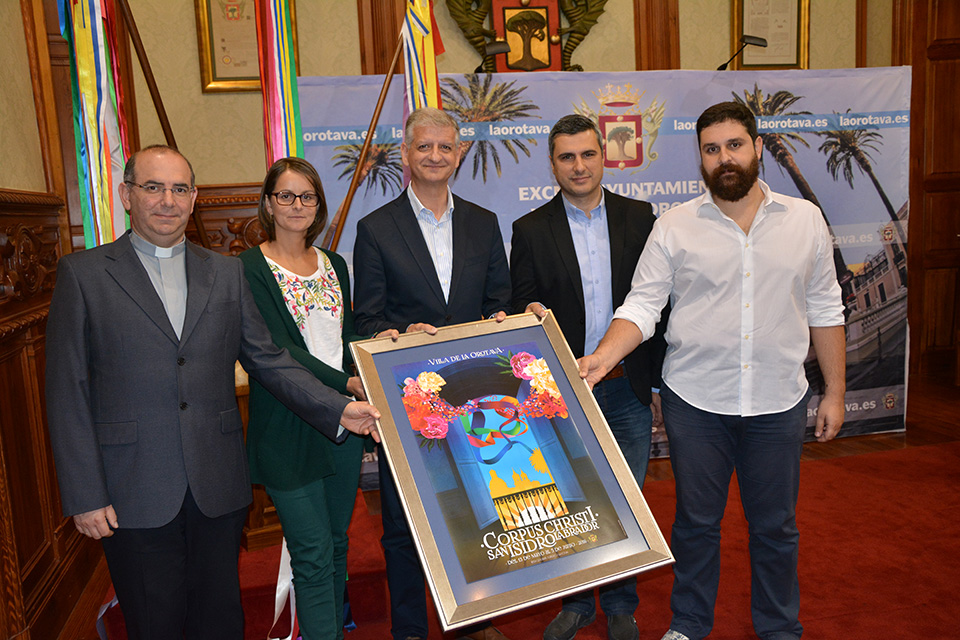 El cartel encargado de anunciar las Fiestas en honor al Corpus Christi y San Isidro Labrador de la Villa de La Orotava 2016, elegido por la Comisión Mixta de las Fiestas, destaca por su colorido. Su autor, el orotavense Eduardo Rodríguez, detalló que la propuesta se basa en la tradición cartelística de los años 60-70, y hace un guiño los carteles turísticos tan famosos en la época.