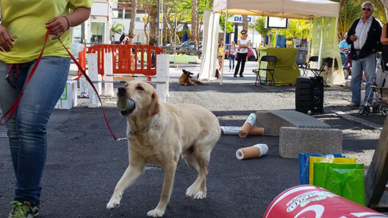 El adiestramiento de perros ha logrado que nuestras mascotas se impliquen activamente en tareas medioambientales, como se constató en el transcurso de la exhibición canina desarrollada en los exteriores del centro cultural de la ciudad turística de Los Cristianos dentro de la campaña “Arona te cuidamos tod@s”.