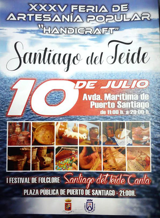 El Ayuntamiento de la Villa Histórica de Santiago del Teide, a través de su concejalía de Cultura que dirige María José García organiza este próximo domingo 10 de julio, en horario de 11:00 a 20:00 horas en la Avenida Marítima de Puerto de Santiago, la “ XXXV edición de la Feria de Artesanía Popular de Santiago del Teide”.