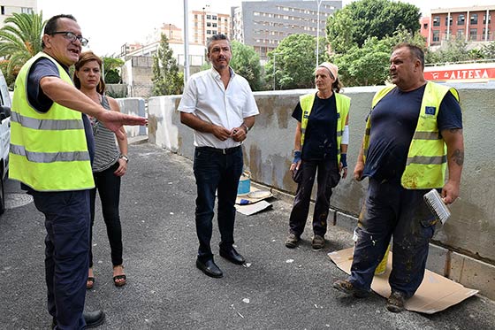 Esta actuación está siendo desarrollada por una cuadrilla de seis operarios, adscritos al programa de mejora en los barrios suscrito con el Servicio Canario de Empleo. También se está ejecutando, de manera paralela a estas labores, una limpieza de las jardineras y espacios verdes de los inmuebles que se encuentran cerca del muro en el que se está actuando.