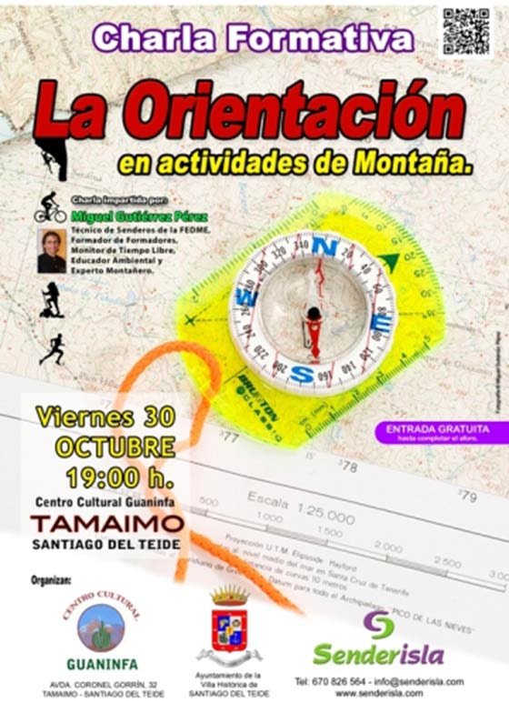 La concejalía de Deportes del Ayuntamiento de la Villa Histórica de Santiago del Teide cuyo concejal responsable en esta legislatura es Guillermo Évora y la empresa “Senderisla”, organizan, una charla formativa, que bajo el título de “ La Orientación en Actividades de Montaña”, pretende concienciar e informar sobre que es lo que se necesita saber sobre orientación de montaña.