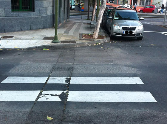 Ciudadanos en Santa Cruz de Tenerife denuncia el estado de los pasos de peatones en el distrito Salud-La Salle