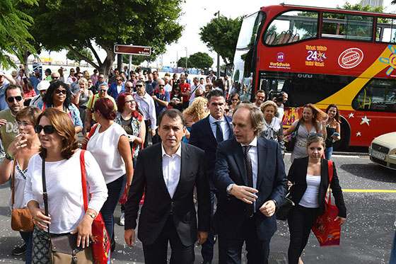 El alcalde de Santa Cruz de Tenerife, José Manuel Bermúdez, asistió a la presentación de la nueva oferta del bus turístico City Sihgtseeing, que incluirá servicios como el traslado de clientes desde el Norte y el Sur de la Isla –en colaboración con Titsa- o visitas al Palmetum, el auditorio de Tenerife o la playa de Las Teresitas.