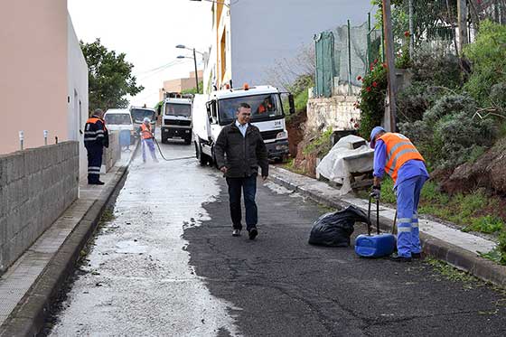La acción se desarrolló en las calles Hibisco, Rafaela González Rojas, Fermín Cruz, Bicariño y Antonio Ramos González. Ocho trabajadores de la compañía concesionaria de limpieza, auxiliados por tres vehículos, actuaron de forma intensiva en distintas zonas que habían sido inspeccionadas previamente por los técnicos municipales.