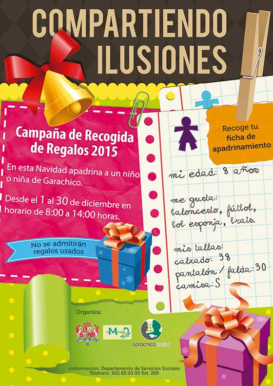 La ilusión y la solidaridad vuelven a ser protagonistas con la campaña solidaria ‘Compartiendo ilusiones’ que lleva a cabo la concejalía de Servicios Sociales del consistorio garachiquense. El principal objetivo es que ningún niño o niña del municipio se quede sin abrir un regalo el día de Reyes.