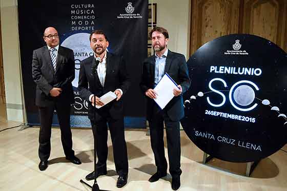 La tercera edición de ‘Plenilunio Santa Cruz’ incluirá más de 100 actividades para todos los públicos en 34 puntos de la capital tinerfeña durante 14 horas el sábado 26 de septiembre. La iniciativa, presentada por el alcalde de Santa Cruz, José Manuel Bermúdez; el presidente del Cabildo de Tenerife, Carlos Alonso, y el director del área de Negocio de CaixaBank en Santa Cruz de Tenerife, José Domingo Pinto, en el Museo Municipal de Bellas Artes de la capital tinerfeña, se desarrollará desde las 11:00 horas del sábado hasta las 01:00 horas del domingo.