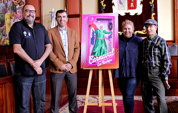 El realejero Silverio Hernández, conocido como “El Bicho”, descubrió este lunes 11 de enero en el Salón de Plenos del Ayuntamiento de Los Realejos el cartel del 'Carnaval de los Juguetes', resultado de una fotografía en la que aparece ataviado con traje de dama antigua dentro de una caja de muñecas, aludiendo así a la temática de la fiesta y reconociendo públicamente su dilatada trayectoria como personaje activo de la misma. Acompañado por el alcalde de Los Realejos, Manuel Domínguez, la concejala de Fiestas, Isabel Socorro, y uno de los profesores del colectivo creador de la imagen, la Escuela Municipal de Fotografía, Alfonso Baute, les mostró su satisfacción por el resultado y el agradecimiento por el hecho de que su pueblo le permita vivir este homenaje tras más de 70 años de participación en las fiestas con sus diferentes disfraces, generalmente femeninos, con los que ha contribuido a llenar de simpatía tan características celebraciones. El próximo 15 de enero se conocerán los detalles del programa de actos de la presente edición de las fiestas.