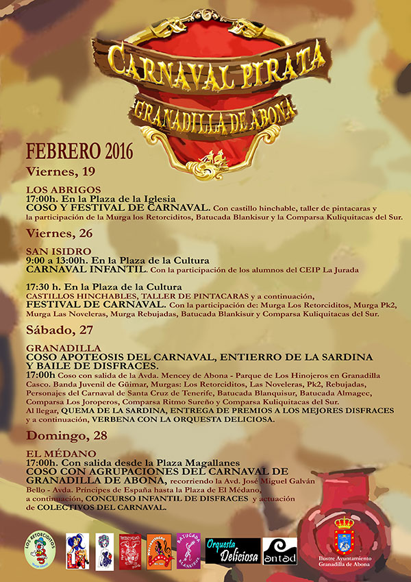 Granadilla de Abona se prepara para celebrar su 'Carnaval Pirata'. La Concejalía de Cultura del Ayuntamiento sureño, cuyo responsable es Óscar Delgado Melo, ha organizado un programa de actos que arranca el viernes 19 de febrero y concluyen el domingo 28 del mismo mes.