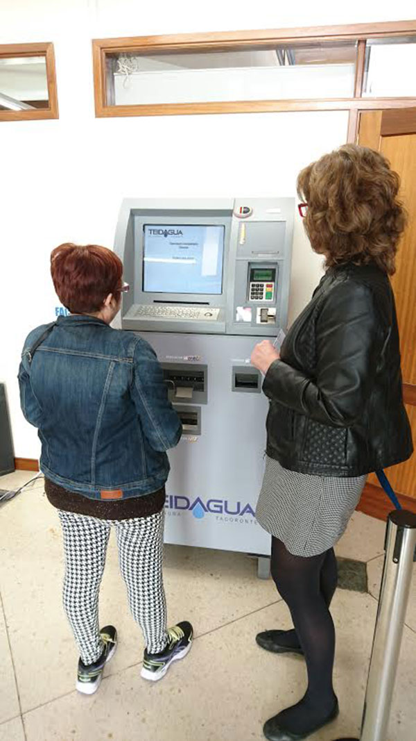 El cajero automático de Teidagua, específico para operaciones del servicio de abastecimiento de aguas del municipio, realizó en 2015 un total de 28.204 gestiones, un 25% más que el año anterior.