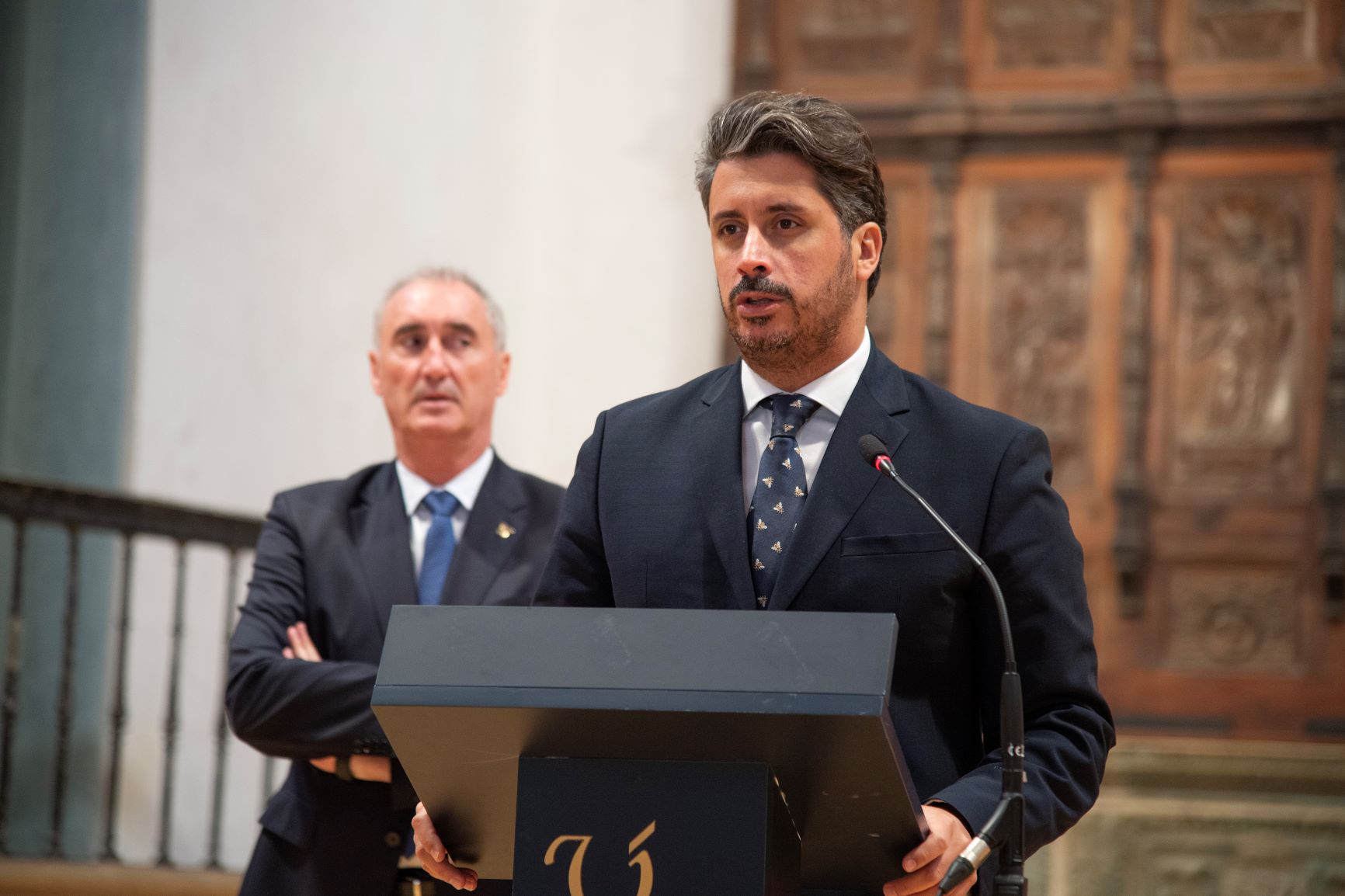 El alcalde de Baeza, Pedro Javier Cabrera Rentero, ha destacado que “la Baeza Episcopal y Universitaria ubicada en el corazón de la provincia de Jaén, frente al escenario natural del valle del Guadalquivir y rodeada de un inmenso bosque de olivos, representa un vivo ejemplo del Humanismo español”. Tras descubrir la placa conmemorativa situada en el pasaje del Cardenal Benavides, el alcalde ha recordado que Baeza es una ciudad de encuentro, donde “la coexistencia de culturas cristiana, islámica y judía, favorecieron crear un espacio de libertades y la apertura a otras influencias, aportando al Patrimonio Mundial la originalidad de una expresión artística con proyección en Iberoamérica”.