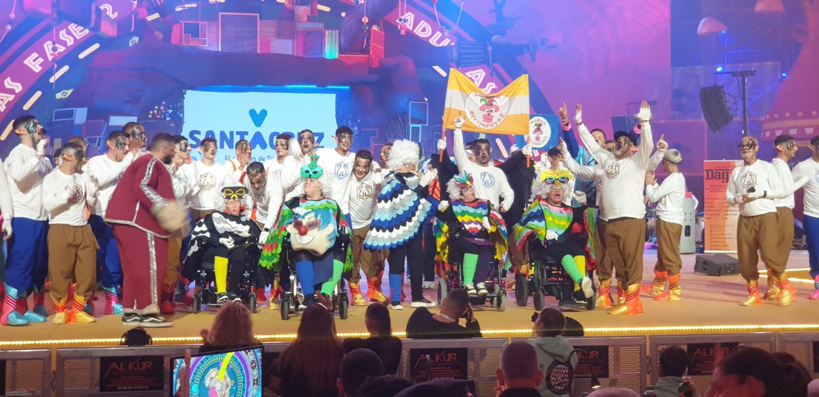 La murga “Reconecta2”, perteneciente a la Fundación Hospitalarias Tenerife, marcó en la noche de ayer martes un hito en el Carnaval de Santa Cruz de Tenerife, al ser el primer colectivo integrado por personas con daño cerebral adquirido que participa en una fase del Concurso de Murgas de la capital tinerfeña. La intervención se produjo gracias a la invitación recibida por Zeta-Zetas, que cedió unos minutos de su actuación para que “Reconecta2” visibilice su reivindicación de un carnaval más inclusivo.