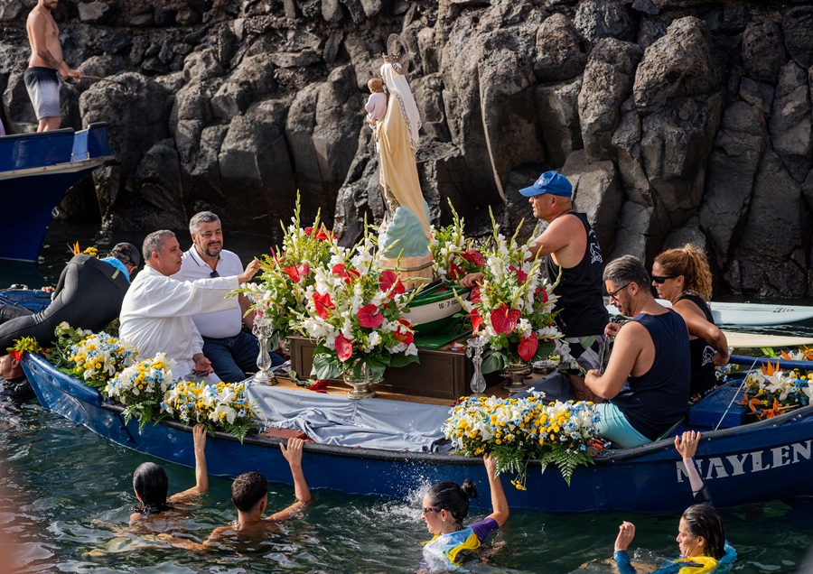 Miles de personas se dieron cita este domingo en el entorno costero de Punta de Hidalgo para acompañar un año más a la Virgen del Carmen en su tradicional procesión marítima y terrestre con motivo de la embarcación de la imagen. Esta celebración, con un largo recorrido en el municipio, está íntimamente relacionada con la labor pesquera y con los pueblos y núcleos cercanos a la mar.
