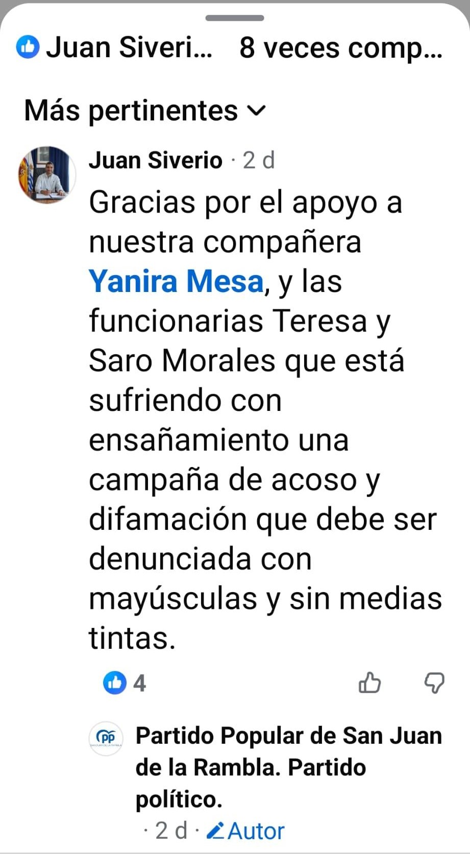STAP-Canarias considera “llamativo” que el portavoz de AUP Si Se Puede, Juan Siverio, haya publicado en redes sociales un mensaje de respaldo dirigido exclusivamente a determinadas funcionarias —la secretaria accidental Carmen Teresa Morales Pérez y su hermana, la exinterventora municipal Saro Morales Pérez—, mientras que otros empleados y empleadas que también atraviesan bajas laborales por presunto acoso o conflictos en el entorno de trabajo “no han recibido el mismo apoyo ni visibilidad”. Y qué casualidad que muchos de esos trabajadores, funcionarios y policías han estado atravesando horas muy bajas y momentos muy difíciles de salud y de posible acoso y persecución aterradores precisamente propiciados por esas personas que ahora solidariamente parecen proteger en exclusiva y no así al resto que son las verdaderas víctimas de quienes ostentan y utilizan el poder para perjudicarles.