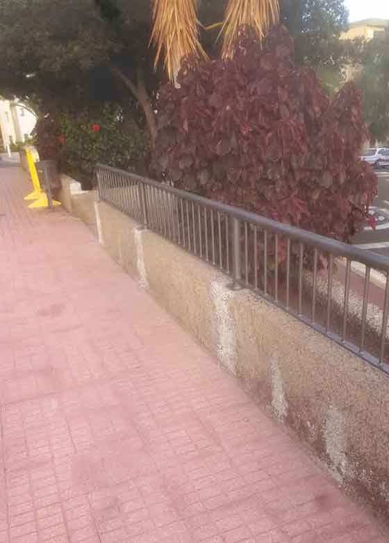 La intervención se ha realizado en el núcleo de Cabo Blanco, en el murete de la calle santa Rita “actualmente derribado en parte, con el consiguiente peligro para las personas que transitan por la acera, al existir un desnivel considerable con la calle Abrigaño”, explica Gómez. Se ha reforzado la estructura preexistente y se ha colocado una baranda metálica a más altura que cumple todas las garantías de seguridad.