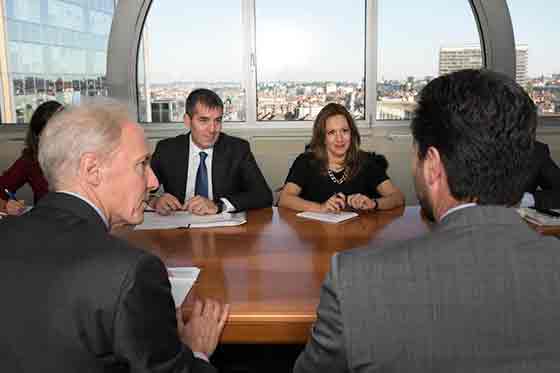 El presidente del gobierno de Canarias estuvo acompañado en la reunión por la consejera de Hacienda, Rosa Dávila, y el viceconsejero de Economía y Asuntos Económicos con la Unión Europea, Ildefonso Socorro.