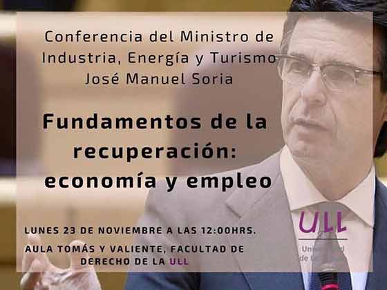 Tras el anuncio de una conferencia del ministro de Industria, Energía y Turismo del gobierno de España, José Manuel Soria, a la Facultad de Derecho de la Universidad de La Laguna el próximo 23 de noviembre, la Asociación Canaria de Estudiantes (ACE) lamenta que el político canario solo se acuerde de la Universidad cuando se acercan las elecciones, y critica que utilice la precampaña para hacer propaganda de una recuperación económica que el PP en el gobierno no ha conseguido traer a la ciudadanía. ACE considera esta conferencia un método para arrancar votos entre el estudiantado de la ULL, a través de la mentira, como viene siendo costumbre en el PP.
