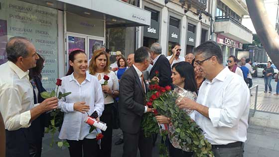 Estuvo con los candidatos de PSOE-NC, repartiendo rosas y programas
