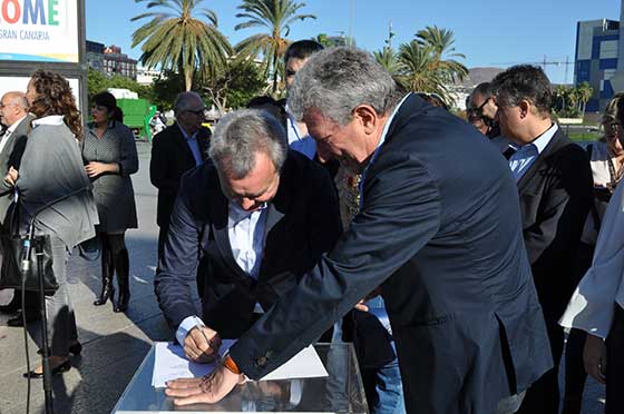 Tras la firma, Sebastián Franquis se trasladó a Lanzarote para firmar el mismo documento con los candidatos de Lanzarote y Fuerteventura.