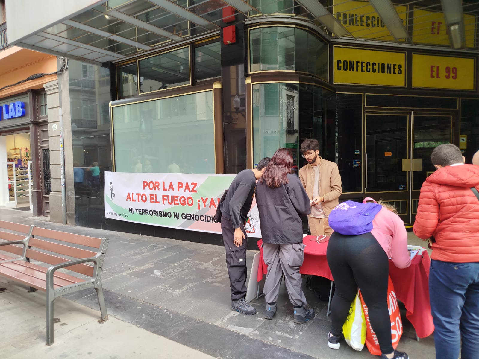Unificación Comunista de España (UCE) ha llevado a cabo este sábado una mesa informativa en la emblemática calle Triana de Las Palmas de Gran Canaria, bajo la consigna "Por la paz, Alto el fuego ya, ni terrorismo ni genocidio". Esta acción se enmarca dentro de nuestra campaña nacional para exigir el cese inmediato de la violencia en Palestina, denunciando tanto los actos de terrorismo como las prácticas genocidas que afectan a la población civil.