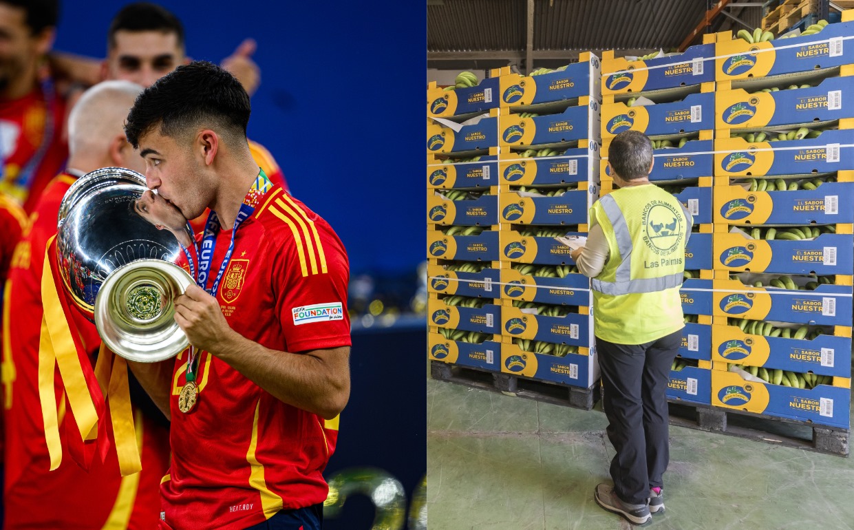 Plátano de Canarias dona un millón y medio de plátanos a la Federación Española de Bancos de Alimentos (FESBAL) por los goles anotados por la selección española de fútbol en semifinales y la victoria en la final